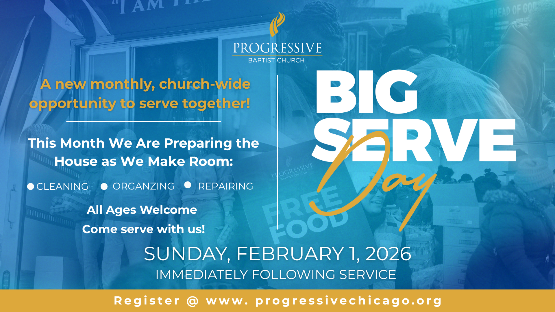 As part of Find Your Fit, we’re trying something new to help our whole church serve together. Serve Days are a new monthly, church-wide opportunity to step in, serve, and use your gifts in a meaningful way, and each month will look different. There’s no long-term commitment, just let us know you plan to be there. Beginning Sunday, February 1st, stick around after service to help prepare the house for two services by cleaning, organizing, and getting it ready for what’s next.