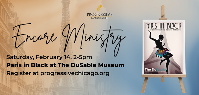 Our Encore Ministry is hosting its first event, Paris in Black, on February 14, at the DuSable Museum of African American History. This will be a meaningful time of fellowship, culture, and connection as we gather to enjoy an enriching experience together. Registration is open now. Sign up today and join us for a great time.